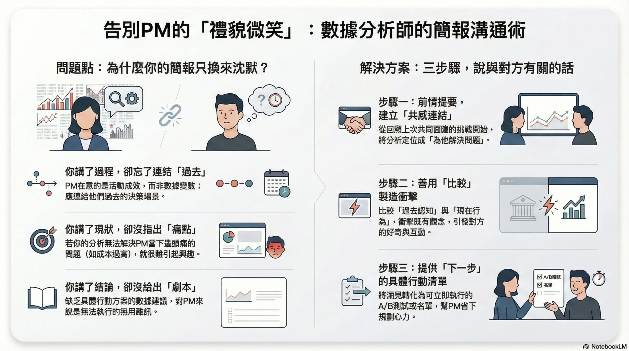 走出會議室的你,覺得心很累。你心裡想:「這群 PM 是不是聽不懂數據?我分析得這麼深,他們怎麼沒反應?」