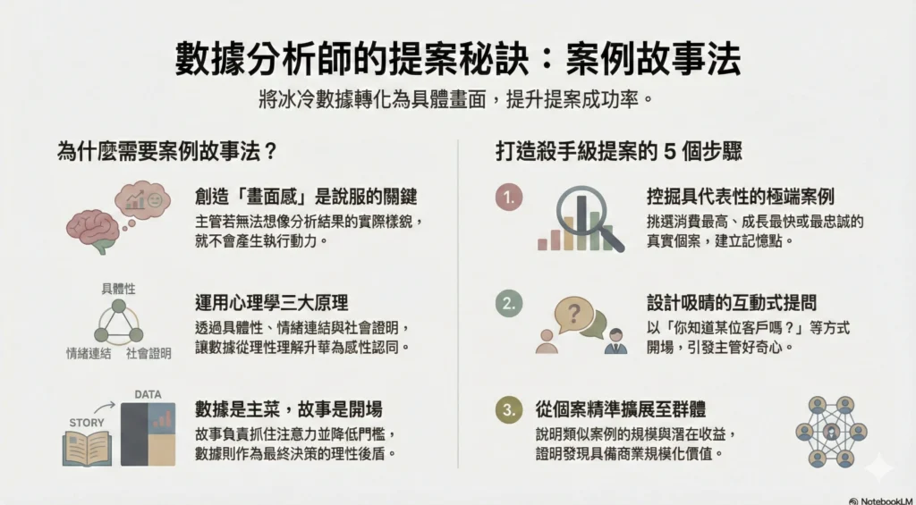 這就是案例故事法的威力:讓冰冷的數據變成有溫度、有畫面的故事。