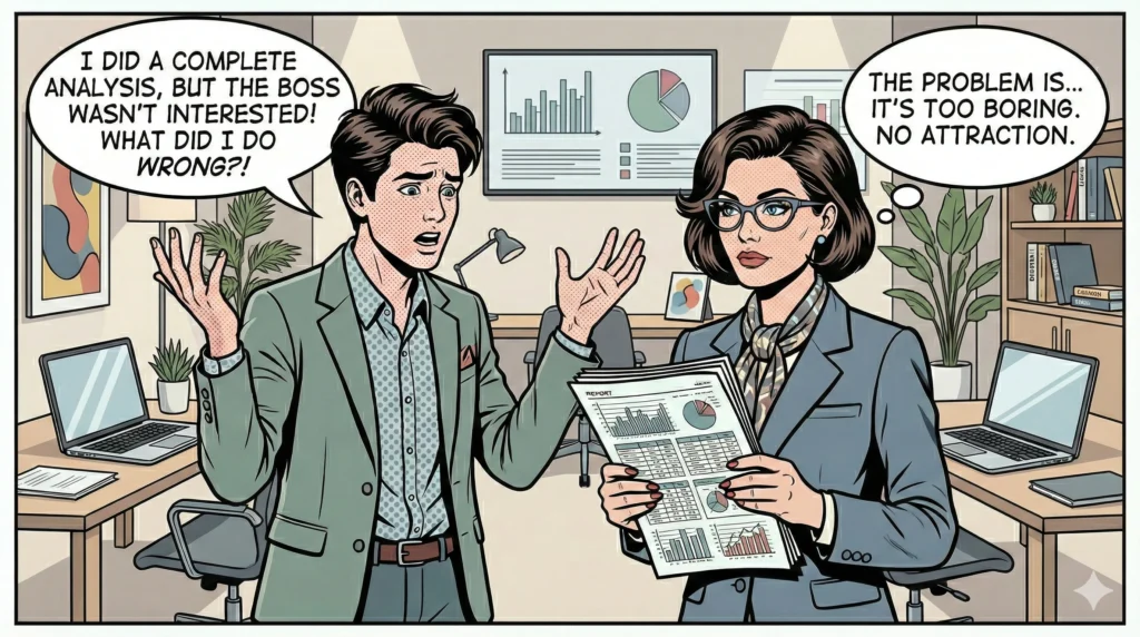 我看了他的提案。分析方法很嚴謹、數據很詳細、圖表很精美。但我一看就知道問題在哪:太無聊了,完全沒有吸引力。
